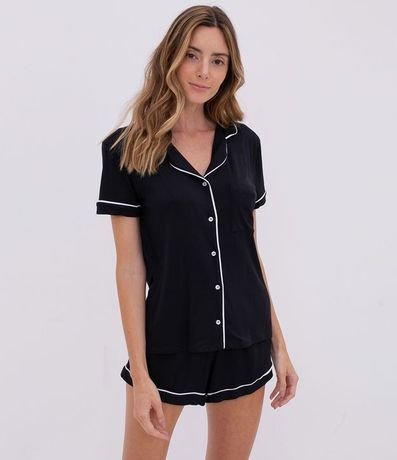 Pijama Femenino Corto a Rayas Americanas con Bolsillo | Renner