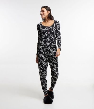Pijama Largo con Botones y Estampa de Caritas Hello Kitty | Renner