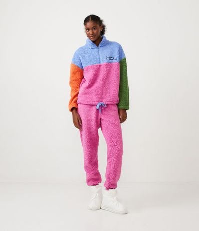Pijama Largo en Sherpa con Cuello Alto y Cierre 1