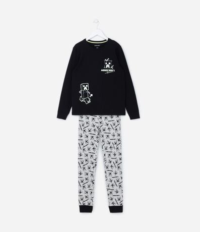 Pijama Largo Infantil con Estampa Minecraft Brilla en la Oscuridad - Talle 7 al 14 años 1