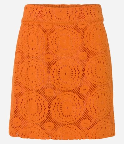 Falda corta de encaje texturizado, con cintura elástica en la espalda.