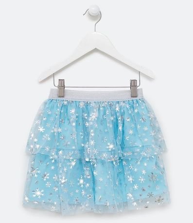 Pollera en Tul Elsa Frozen Estampa de Cubitos de Hielo Tam 4 a 12 años 1