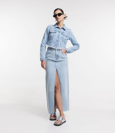 Pollera Larga Jeans con Abertura Frontal y Desgastes en la Altura del Cuadril 1