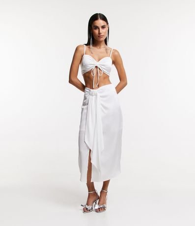 Pollera Midi en Satén con Nudo y Punta Alargada | Renner