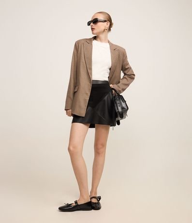 Pollera Recta corta en PU con Bloco Geométrico de Gamuza 1