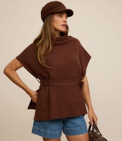 Poncho en Punto con Cuello Alto y Cinturón Lazo 1