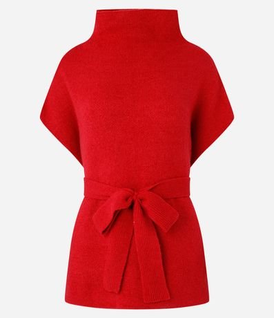 Poncho en Punto con Cuello Alto y Cinturón Lazo 1