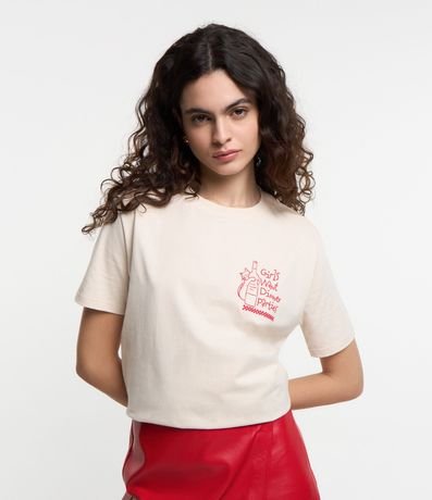 Remera Alargada en Algodón con Estampa Gato con Vino | Renner