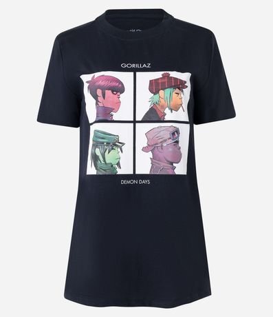 Remera Alargada en Media Malla con Estampa Gorillaz 1