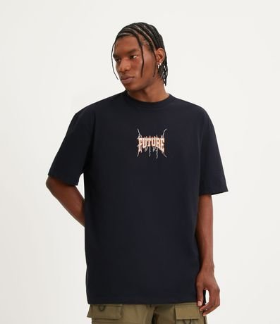 Remera Alargada en Media Malla con Lettering Future | Renner