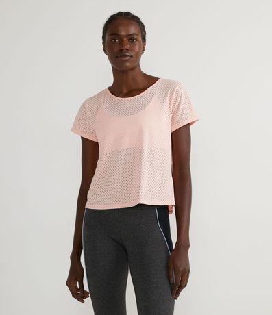 Remera Corta Deportiva en Poliamida con Manga Corta y Textura de Agujeros | Renner