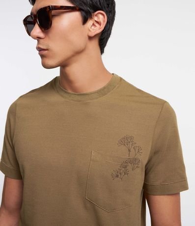 Remera en Algodón con Estampa de Follaje y Bolsillo en el Pecho 1