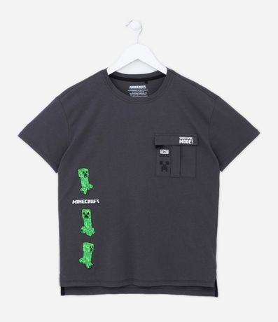 Remera Infantil con Bolsillo y Estampa Minecraft - Tam  5 a 14 años 1