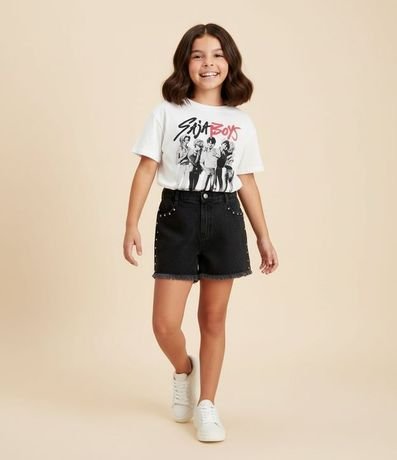 Remera infantil confeccionado en algodón certificado BCI y buenas prácticas ambientales con cuello redondo, mangas cortas y estampa localizada del grupo Saja Boys de Guerreras del K-pop. Modelo oversized, toque sauve y acabado de calidad, ideal para componer looks casuales cómodos.