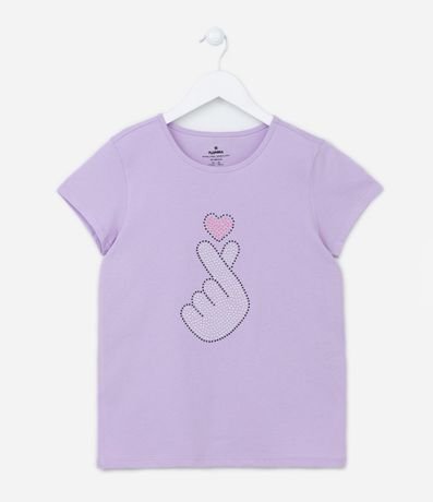 Remera Infantil con Estampado de Corazones con Deditos y Pedrería- Talle 5 a 14 años | Renner