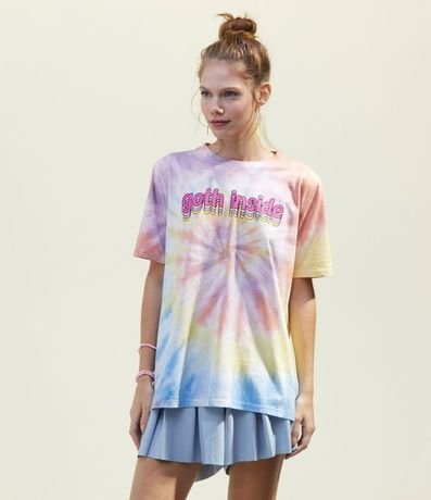 Remera Larga Manga Corta Tie Dye Estampa Goth Inside 1