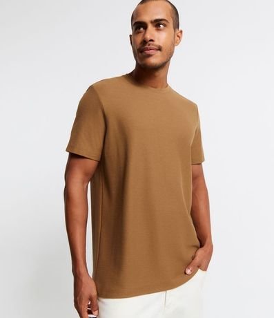 Camiseta de manga corta en algodón, modelo regular, con textura discreta. Versátil y cómoda, es una gran opción para el día a día.