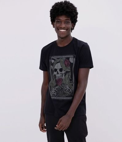 Remera Masculina Estampa Esqueleto Musa con Rosas 1
