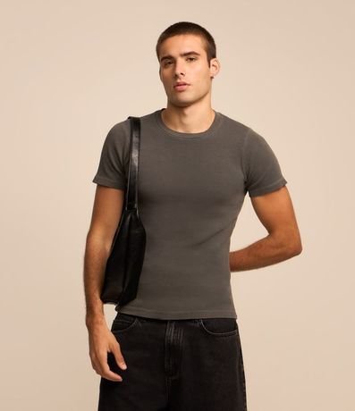Remera masculina modelo muscle, confeccionada con rib desteñido y textura acanalada, tiene cuello redondo y mangas cortas. Modelo que permite un look diferente con mucha personalidad y comodidad.