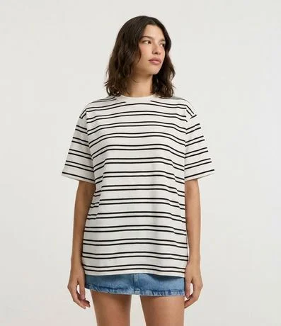 Remera Oversized en Algodón con Estampa Rayada