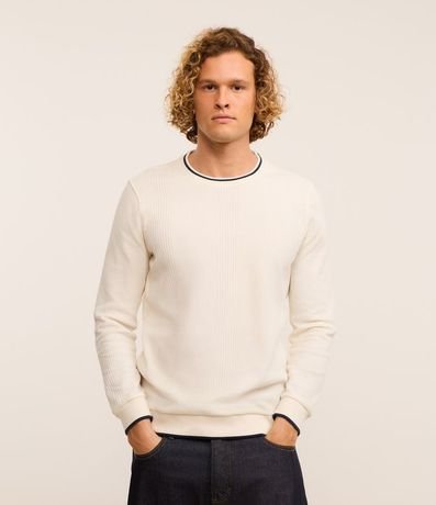 Remera Regular con Textura Vertical y Cuello Contrastante | Renner
