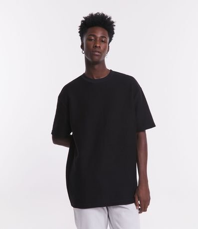 Remera Relaxed en Media Malla con Textura Acanalada y Manga Corta | Renner