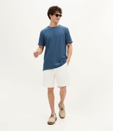 Remera masculina en media malla, con cuello redondo, manga corta y con texturas verticales en toda a prenda.