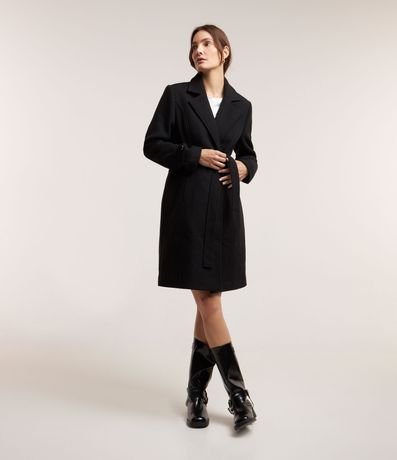 Saco Largo en Polivelour con Cinturón y Botones | Renner