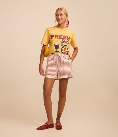 Short corto, modelo boxer con cintura elástica, lazo, confeccionado en viscosa + lino y rayas contrastantes.