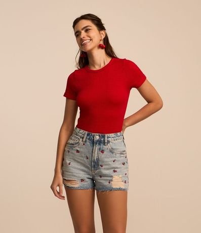 Short en Jeans con Bajo Deshilachado y Bordados de Cerezas | Renner