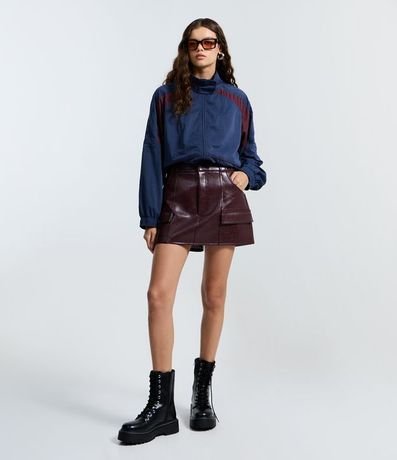 Short pollera corto, confeccionado en material sintético, Pu, bolsillos delanteros grandes y con solapas.