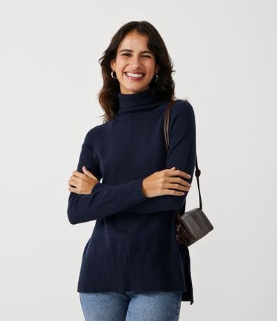 Buzo suéter en tejido de punto con cuello alto, detalhes aacanelados, cava raglan y barra detrás ligeramente alargada. Además de lindo, el modelo tambien es muy cómodo y calientito. Perfecto para componer looks en días de frios, con encanto y estilo.