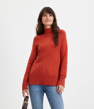 Suéter con Cuello Alto en Tejido de Punto y Detalles Aacanelados