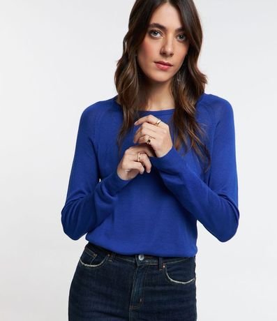 Suéter de punto, con cuello redondo, mangas largas y sin estampa.