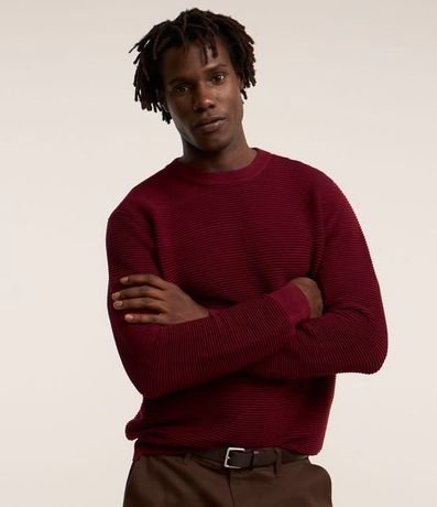 Suéter de punto liviano para hombre, con cuello redondo, mangas largas, puños ajustados y texturas horizontales.