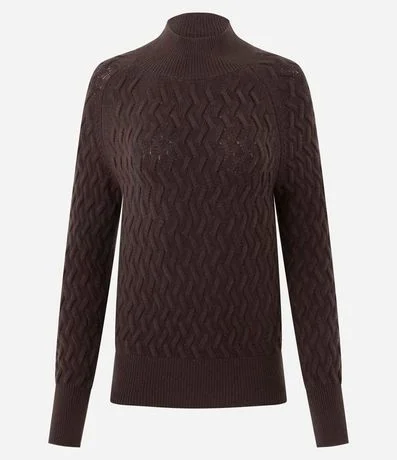 Suéter femenino confeccionado en punto más sostenible, cuello alto, manga larga ajustada, bajo ajustada y textura zigzag.