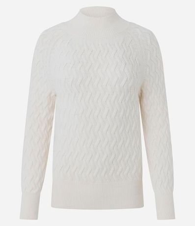 Suéter femenino confeccionado en punto más sostenible, cuello alto, manga larga ajustada, bajo ajustada y textura zigzag.