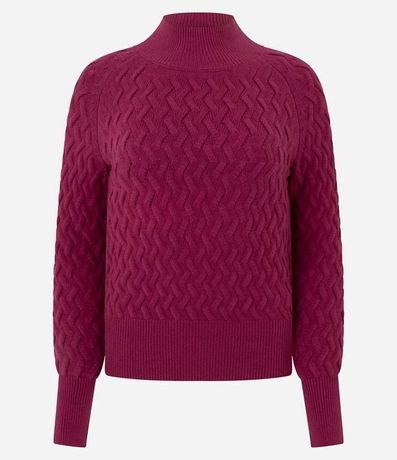 Suéter femenino confeccionado en punto más sostenible, cuello alto, manga larga ajustada, bajo ajustada y textura zigzag.