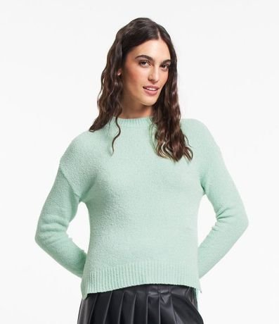 Suéter en tejido de punto texturizado con cuello redondo, sin estampado. Para looks bonitos y llenos de personalidad, apuesta por esta pieza comodín, porque además de coqueta, es cálida y súper versátil.