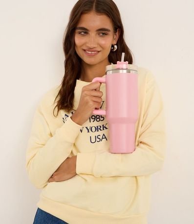 Vaso de metal con corre, cierre por tapa y pajita reutilizable.