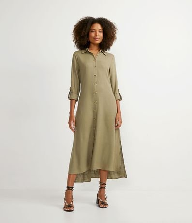Vestido chemise largo en viscolino. La & nbsp; pieza & nbsp; garantiza comodidad y practicidad, y se puede utilizar de varias formas al no tener estampado. Va bien con un viaje a la playa o incluso con un viaje plano para dar un paseo al final de la tarde.