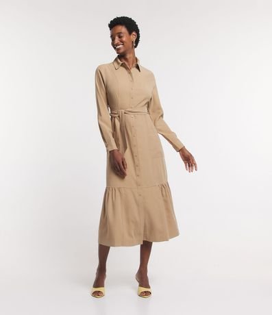 Vestido Chemise Midi en Viscosa con Abotonado y Lazo en la Cintura | Renner