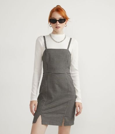 Vestido Corto con Estampado Cuadrillé y Aberturas 1