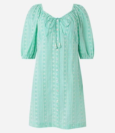 Vestido Corto con Lazo y Mangas Bufantes Estampa Boho 1