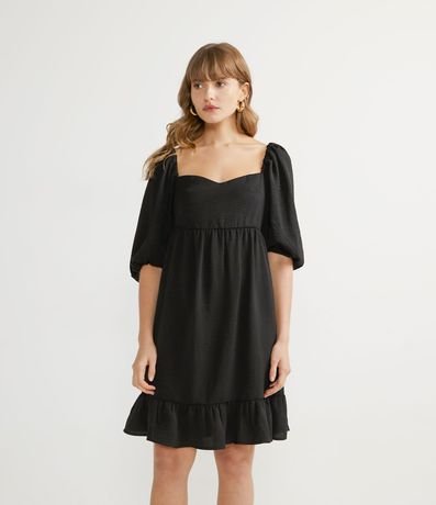 Vestido Corto con Manga Abullonada y Volado en la Barra | Renner