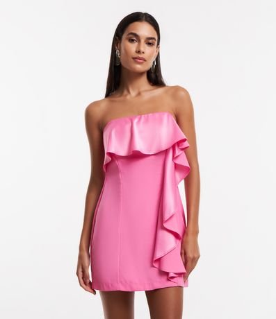 Vestido Corto Sin Manga con Tejido Satinado y Volados 1