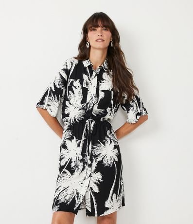 Vestido en Viscosa con Estampado de Cocoteros 1