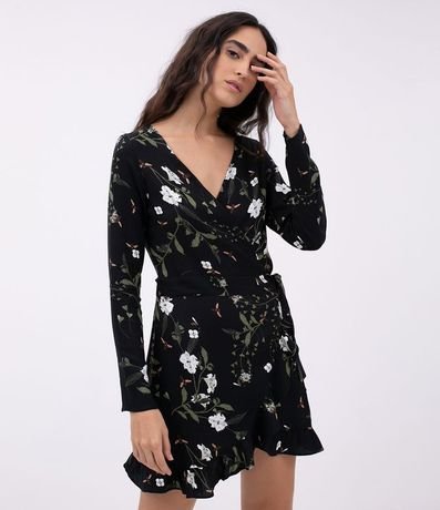 Vestido Estampado Cruzado con Amarre y Volados | Renner