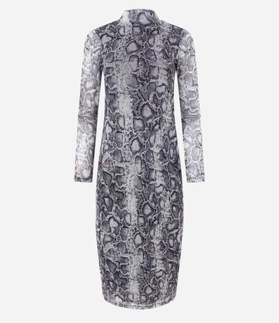 Vestido Largo en Tul con Cuello Alto y Estampa Animal Print Serpiente 1