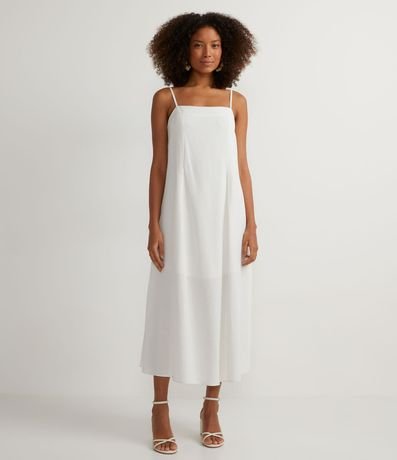 Vestido Midi en Lino con Tirantes Finos y Pliegues Frontales | Renner